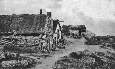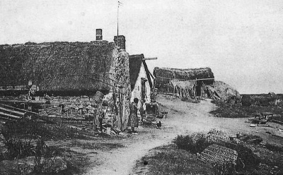 This picture was supplied to Jerripedia with the caption 'Jersey fishermen's cottages, Chausey' The buildings are not those which are familiar in pictures of the Minquiers reef, which lies about half way between Jersey and Chausey, so it must be assumed that this is an early photograph or drawing (the quality is not good enough to be certain) of les iles Chausey, and that these are French fishermen's cottages. There is some evidence that Chausey was, in Roman times, considered as part of the Channel Islands, but although they are inhabited today and attract thousands of day-trippers through the summer, for a long period they afforded only a temporary home for fishermen operating out of Granville and nearby ports on the French coast. There is no evidence of any strong link between the Channel Islands and Chausey in Norman times which might have caused Chausey to have become English possessions after the loss of mainland Normandy by King John, and Chausey has remained resolutely French over the centuries