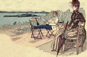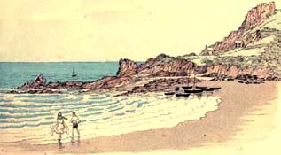 It is said that a picture is worth a thousand words, and never could it be more true than in 1888, when these impressions of a holiday island were published in a French book entitled Plages de Bretagne et Jersey (Beaches of Brittany and Jersey). No words other than the original captions are needed to sum up the image which was created of an island which was beginning to rely heavily on tourism to expand its economy as the Victorian era was at its peak. (Note: These images were previously dated to 1912 and Edwardian Jersey, drawn from a later edition of the book, now known to have first been published in 1888.)