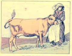 (Look, father, you're even beginning to greet the cows: My dear child, it is permitted for a French breeder to take off his hat before these approved representatives of a justly celebrated aristocracy and to wish for a union of these noble Jersey cows with our large national cattle.)