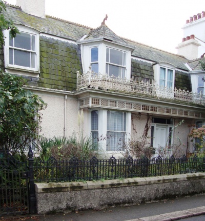 A good example of late 19th century house with many features of historic significance, including distinctive iron ornamentation on balcony. Semi-detached, single storey with attic, 5-bay. Mansard slate roof.