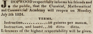 We are currently researching these newspapers and have paid particular attention to these 200-year-old editions of 1824, from which a selection of news items and adverts are featured on this page. Please note that the page is still under development. The adverts will be reorganised and translated as time permits.