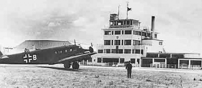 The first year of Occupation was a busy time at the airport. The germans set about extending the runways, creating concrete taxiways and improving facilities. Eight wooden hangars were built on the south-east boundary. Seven of them were taken to France in 1944 and the eighth remained to be used by a hire car company after the war.