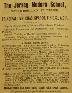 The Jersey Modern School in Rouge Bouillon was seen by many affluent Jersey families as providing an ideal preparatory education for their sons before a later move to Victoria College. The school started life in Colomberie, moved to Janvrin Road and then to larger premises in Rouge Bouillon. It was one of Jersey's most successful private schools in the early 20th century