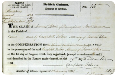 - The UCL Legacies of British Slave-Ownership website with the database of the 1834 Compensation Register which lists all people who claimed compensation when slavery was abolished - https://www.ucl.ac.uk/lbs/ -