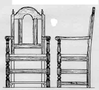 This example, however, shows the liberal use of the moulding-plane first seen in a simple form in Chair 2 and then used frequently in later chairs. The style of the finials, as well as the general condition and feel of the work, suggests that it was made after 1700, 20 or more years after this fabled king had died. For all this, we see a design which combines various different ideas in an original and successful way: it is a Jersey hybrid of considerable importance and leads the way to many other Jersey hybrid designs throughout the 18th century. It would also have been the proud possession of the man who commissioned it and may have been one of a set of similar chairs.