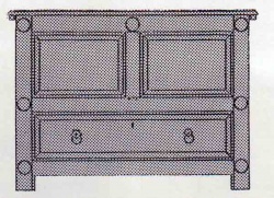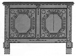 There is, however, a type of buffet a quatre portes from Brittany called a malouiniere, which has mouldings on its doors mitred to form large octagons and turned bosses in the corners of the panels. These cupboards are peculiar to the area of Saint Malo, and are said originally to have been made by Dutch prisoners of war. The period in question would have been during Louis XIV's incursions into the Spanish Netherlands in the late 17th century. The Dutch cupboards which were their inspiration, with their elaborately mitred mouldings enclosing octagonal and polygonal shapes, are from southern Holland and were being made in the middle of the 17th century. They, in their turn, are thought to have been introduced into the Netherlands by Spanish craftsmen who were familiar with Arabic designs: but to pursue these influences further is beyound the purpose of this investigation.