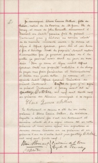 Wills in Jersey were generally made by men, widowed women and spinsters. This is because a wife's property was considered part of her husband's from the time of their marriage, and only reverted to her if he died first. Since 1851 property owners have generally made two wills, one concerning any houses, land and other properties they owned - Realty; the other relating to their possessions, cash, shares, rentes and other personal property - Personalty. Prior to 1851 it was only possible to leave Personalty by will, Realty passed to heirs at law. The wills in the Archive collection generally concern Personalty, but often issues of life enjoyment of a property by a spouse with subsequent reversion to children are covered in a will of Personalty. Wills of Realty are registered in the Public Registry of contracts.