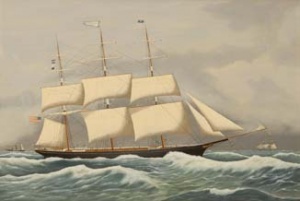 - "For this roaring California trade John Bertram and his partners built a famous American clipper, the John Bertram, of eleven hundred tons, at East Boston. The remarkable feature of this undertaking was that the ship was launched sixty days after the laying of her keel and ninety days from the time the workmen first laid tools to the timbers she was sailing out of Boston harbor with a full cargo, bound to San Francisco. The John Bertram was a staunch, able, and splendidly built ship, notwithstanding this feat of record-breaking construction. Thirty years after her maiden voyage she was still afloat in the deep-water trade, although under a foreign flag, a fine memorial of the skill and honesty of New England shipbuilders.
