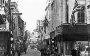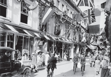 The street in 1935, decorated for King George V's jubilee