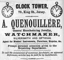 We have created a series of histories of all the shops in King Street. Follow the links in the list below to articles on individual properties. One factor worth noting in these articles is the number of businesses run by English and French immigrants to the island. There are very few records of any shops at all in St Helier until very late in the 18th century. Business was carried out at harbour and in the market in the Royal Square and then the new premises in Halkett Place, and as the growing population of the town in the early years of the 19th century created a demand for retail outlets, these were mainly provided by outsiders who settled in the island with their families.