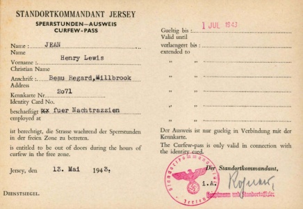 Curfew pass issued to G L'Enfant during the Occupation as a member of the St Brelade Honorary Police [1]