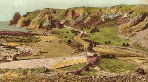 The beach is an important part of L’Etacq. For many years it was a prime site for the collection of vraic and there is still some evidence of markers on the rocks that were used in this practice and the paths followed to cut it. Vraic collecting is a long tradition in Jersey and vraic was the prime fertiliser for the farmers of the Island. Sites for drying vraic were highly sought after. The Jersey Archive holds a