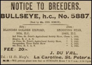 The property was owned by the du Val family into the 20th century. In 1941 John, his wife Eunice, nee Le Gros (1867- ) and his sister Marie Louise were living there. John was a farmer and also Constable of St Peter. He inherited the farm from his father Philippe. Jersey Archive holds many items of correspondence addressed to John during the Occupation in his official capacity. He was a very long-serving Constable, having taken office in 1921, and retired in 1952 at the age of 78.