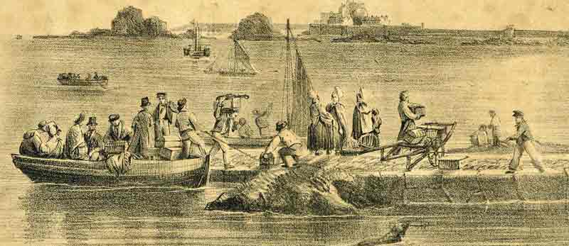 In the mid-19th century the States embarked on an ambitious project to build a large deep-water harbour with an arm stretching out from La Collette towards Elizabeth Castle, which would meet another arm from the castle. The latter was built and survives to this day, but as work progressed on the three-quarter mile long pier from La Collette it was breached in severe storms in the winters of 1874, 1875 and 1876 and the project was abandoned.