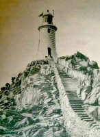 Corbiere Lighthouse painted by Larbalestier