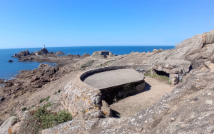 - "The headland is studded with concrete fortifications that the Germans left behind. Near their tall fire-control tower is a tiny cove known as La Rosiere (tbie may mean a place where reeds grow, from the old French ros a reed, or it may refer to wild roses, of a creeping variety, which grow in the vicinity). There are caves there which, it is firmly believed, used to be used by smugglers.