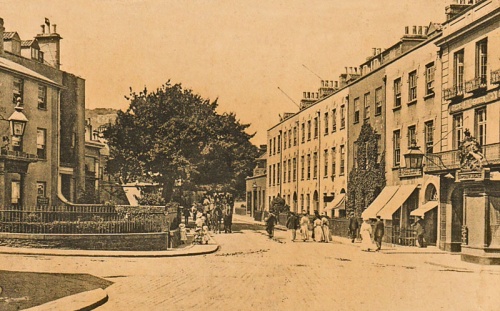 This is Hemery Row, and five of the seven houses survive today. Four have had the original cement rendering removed to reveal the fine granite work beneath.