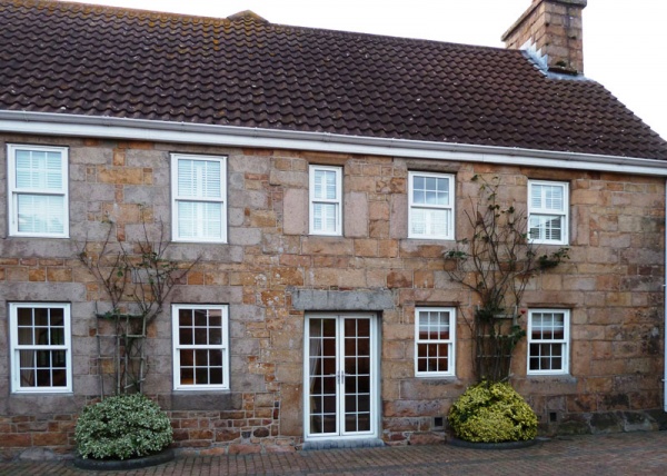 - Le Vesconte: This property has been in the Le Vesconte family since 1755, having passed by marriage from the Marets. Philippe Le Vesconte married Marie Maret, younger daughter and heiress of Amice Maret (1663- ). Amice's father Jean (1629- ) may be recorded in a shield-shaped relief on the small arch at the entrance