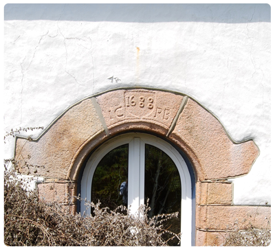 La Preference Cottage is of little architectural or historical interest with the exception of the reused decorative fragments from the old farmhouse site. The stone archway on the south front has roll mouldings, a keystone with inscribed shield, and unusual shoulder stones (described in Old Jersey Houses as like a Dutch girl’s cap. One explanation for this unusual shape may be that the archway began as part of a double archway and that the upturned shoulder stone originally linked to a larger adjacent carriage arch. To a degree the archway is a concoction as there are extra base stones added below the chamfer stops.