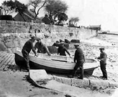 Here references in official documents cease for over two ceturies, until in 1825 Grouville parishioners sent a petition to the States complaining that over 40 boats based at La Rocque were exposed to southerly gales. Fishing gear had been lost and one boat had broken free of its moorings and drifted across to the French coast. They suggested that for only £200 the two large rocks in the harbour could be joined with a wall to provide protection from gales, and also to reduce erosion of the coastline.