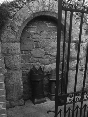 The early arch in the rear north wall and a heavy stone chimney incorporated in the modern house behind lead to the suspicion that the site was bigger and included some very early building before the present house was built.