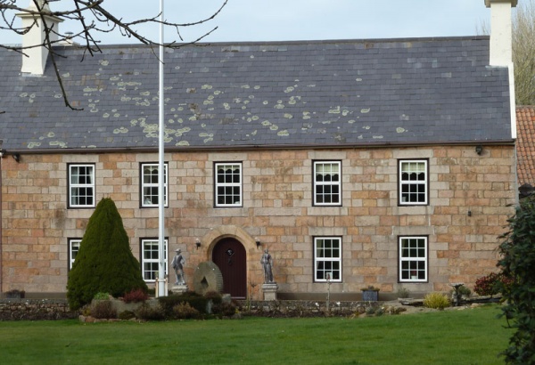 A good example of an early house, refronted mid-18th century, retaining its character and fine stonework features. Shown on the Richmond Map of 1795. One of the island's oldest recorded gablestones in outbuilding - 1609 with initials PN.