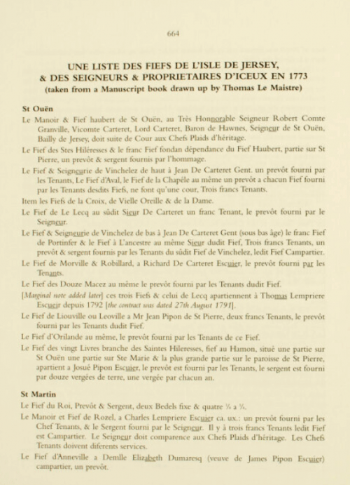 Le Maistre's list of fiefs