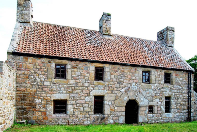 The property is sometimes referred to as Ponterrin Manor, because of its seigneurial association with the fief, and the older house is traditionally known as The Monastery. This is in part based on the chamfer stops to the main doorway, which have a pre-Reformation cross on the left-hand stop and what is interpreted as a chalice on the right-hand stop.