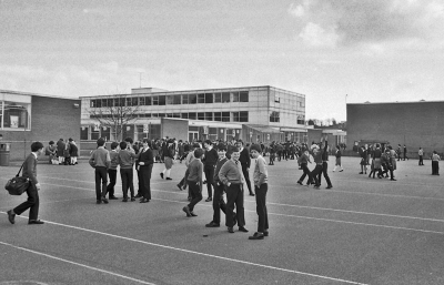 An aerial view of the new school in 2008