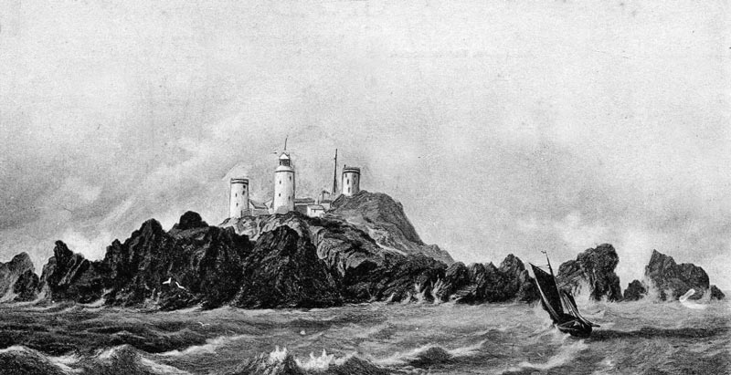 Les Casquets when all three lighthouses were the same height