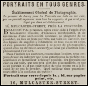 1857 advert for E R Cook. This very early photographer in Jersey is not included in any previous listings we have seen