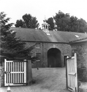 Barn has slate roof with open cupola, with ogee lead roof, over throughway.