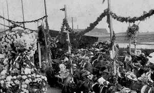 An early float in the shape of a shoe