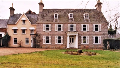 A substantial farm group with a Georgian style 19th century frontage to an earlier house, and late 19th century dower wing, 18th century or earlier farm buildings. Shown on the Richmond Map of 1795.