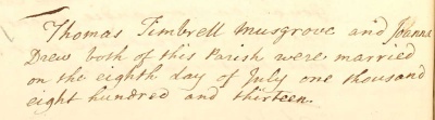 Thomas Timbrell Musgrove married Joanna Drew in St Helier in 1813