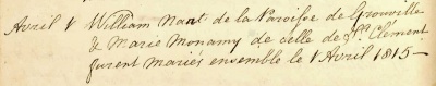 William Nant married Marie Monamy in St Clement in 1815