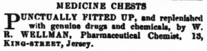 He was followed by chemist and druggist William Richard Wellman (1827- ), who was living there in 1851, listed in the census as head of household at the age of 23, with his older sisters Elizabeth Ann and Susannah, and his 77-year-old grandmother Susanne Le Gallais, nee Sorel.