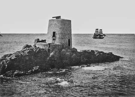 A variant of the 'Martello' designed by Royal Engineers in England was adopted in Jersey. Three small towers were constructed between 1808-1811 on islets off the south coast at Portelet, Noirmont and Icho. More towers were planned for the coasts around St Helier, but were not built.