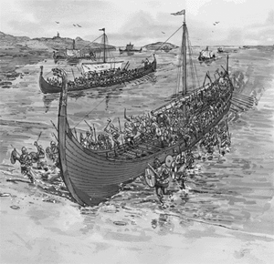 The area of France now known as Normandy was settled in the ninth century by Scandinavian invaders known as Northmen or Normans. In 911 the King of France, Charles the Simple, gave one of their leaders, Hrolf Haraldsson, or Rollo, the title Duke of Normandy. He allowed this band of Vikings to settle and farm their land to stop others invading and moving inland to attack Paris.