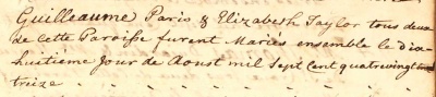 Guillaume Paris married Elizabeth Taylor in St Helier in 1793