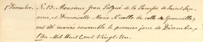 Jean Pelgue married Marie Nicolle in St Saviour in 1821