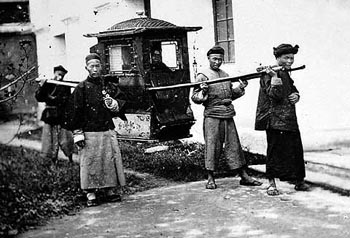 Here I must mention one gruesome sight that I unintentionally witnessed on this same bridge - a man in a cage being stowed to death. The cage was just big enough to stand in, and his head projected from a hole in the top. As he was a short man, a couple of bricks were under his feet, otherwise he would be hanging from the top by his chin and the back of his head. When I saw him the poor wretch had been in the cage for some days and I believed he lingered on for sometime longer before he died. I have an idea that he was drugged with opium and if so, he perhaps did not suffer very much. Each day he was taken to the Magistrate’s Gamen and put out for the public to see in the morning. This will give an idea of cruel nature of the Chinese punishments.