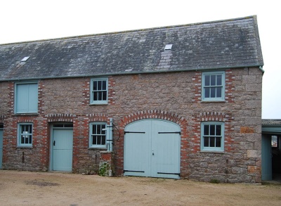 Forming a courtyard to the north and east of the main house is an interesting set of associated mid-late 19th century farm outbuildings. The layout of these buildings is partly influenced by the early curved boundary of the adjacent parish churchyard. The outbuildings includes a range of granite pigsties, and a circa 1870s L-plan two-storey combination shed of a form distinctive to Jersey - of rubble granite with chequered brick dressings and a flattened brick arched throughway.