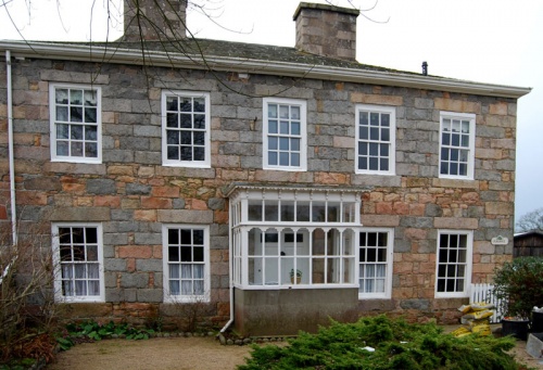 - Dupré: The current fine granite house must have replaced a much earlier one, as there are two 17th century datestones recording ownership by the Dupré family. One is marked 1645 with the initials of Jean Dupré (1600-57) and his wife Foy Arthur, set into the wall of an extension at the back of the present building. The other stone of 1675, in an outbuilding, has the initials of Jean Dupré junior (1630-1718) who married Sara Renaut.