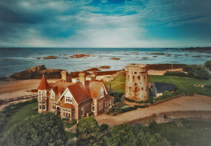 La Platte Rocque is of special architectural, historical and archaeological interest as the site contains an important late Victorian Gothic house and defensive military works dating from the 18th century to the second world war, which are illustrative of the history of fortifications in Jersey and the development of defensive theory and design in the context of a changing military environment. Snowdon Robin purchased the site over a number of separate transactions between 1885, when an earlier house was purchased, to 1903, when the tower became part of the site. In the late 1890s, Robin constructed the present house in the Victorian Gothic style that was considered as the fashionable ideal for rural country houses during that period. The house has a very strong architectural design and displays elements characteristic of Victorian Gothic buildings - including an asymmetrical layout, a large porch, octagonal turrets at its southern corners, a deep sloping tiled roof with tall brickwork chimneys, numerous gables - some hung with fish-scale tiles, mullioned and transomed windows on the ground floor, and oriel windows. The strong architectural design continues to the interior of the house which retains much of its authentic fabric and Gothic features including a substantial staircase with turned balusters, wood panelled doors and architraves, an inglenook fireplace, dado panelling on the walls, and ceilings with ornamental coffering. Both the house and tower are prominent landmarks of great scenic value. There are late 20th century structures in the grounds of the house and tower, including faux fort walls.