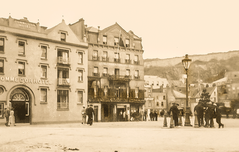 A closer view of the Pomme d'Or on the left, next to the Southampton Hotel