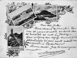 Rene Jouan, who would eventually command a French Navy submarine, spent some time in Jersey in the closing years of the 19th century, perhaps attending the French Navy school at Highlands, which would later become Notre Dame du Bon Secours. He sent postcards to his family in Rouen, and as far afield as Madagascar, a number of which have survived. They include a rare postcard posted on 31 December 1899, the last day of the century.
