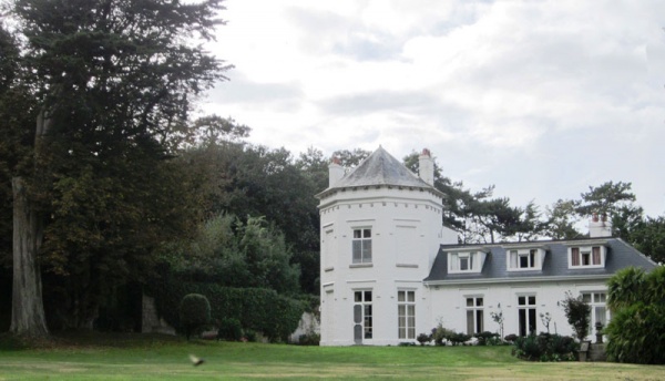 The 1870s Baudoux photos, taken a year or two apart, show various structures which survive in the grounds and how they related to each other, including the Victorian Gothic gazebo exposed on a promontory, the crenellated wall around the forecourt, the surviving tower forming part of the house, a distant view of the circular tower and the lower entrance off Les Vielles Charrieres.