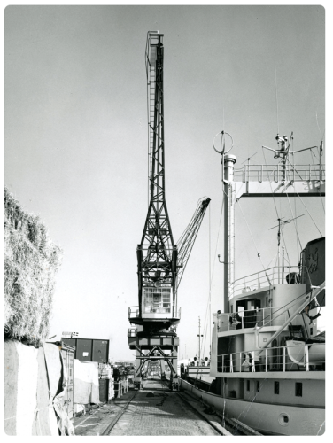 Dismantling a derrick on the New North Quay in 1976