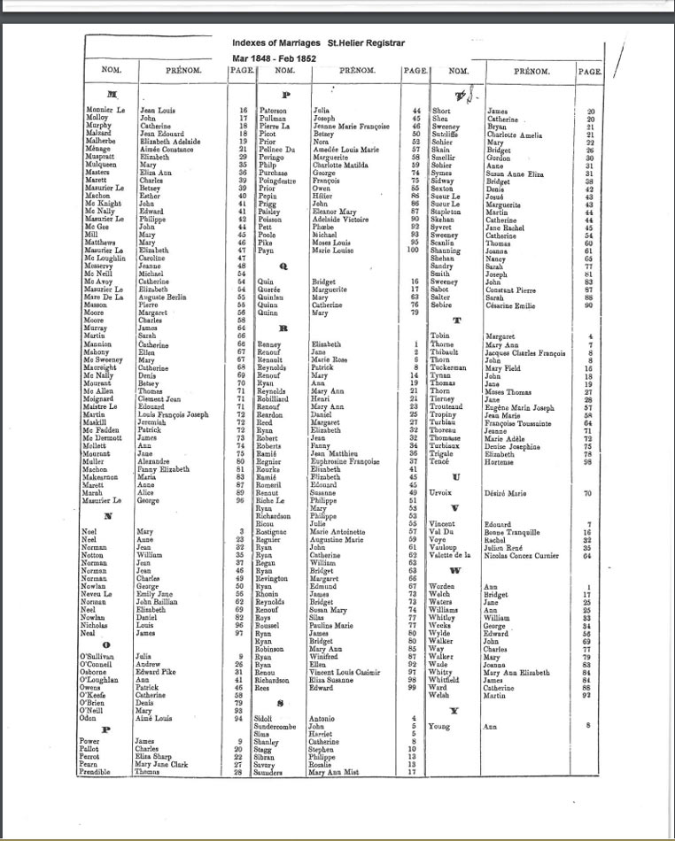 St Helier non-Anglican marriages indexes 1842-1852